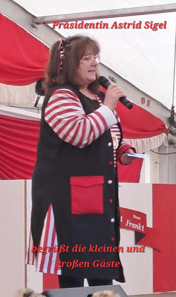 Die langjährige Präsidentin Astrid Sigel begrüßte am Sonntag Mittag den vollen Saal neugieriger Karnevalsfreunde im Freilinger „Gürzenich“. Da in der Lommersdorfer Bürgerhalle endlich die Sanierung der Flutschäden in Angriff genommen wurde, steht diese bis nächstes Jahr für keinerlei Veranstaltungen zur Verfügung. Hier ein herzliches Dankeschön an Familie Schwarz für die Gastfreundschaft.