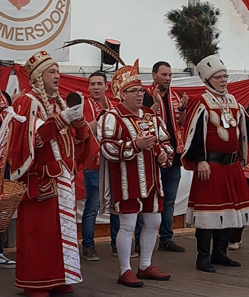 Präsident „Hacki“ als Sprecher der Rodenkirchener Tollitäten witzelte darüber, dass wir ja schon einen großen Bauern vorzeigen könnten, aber dass da noch jede Menge Luft nach oben sei im Vergleich zu ihrem Bauern Alex ( 2-Meter-Statur).