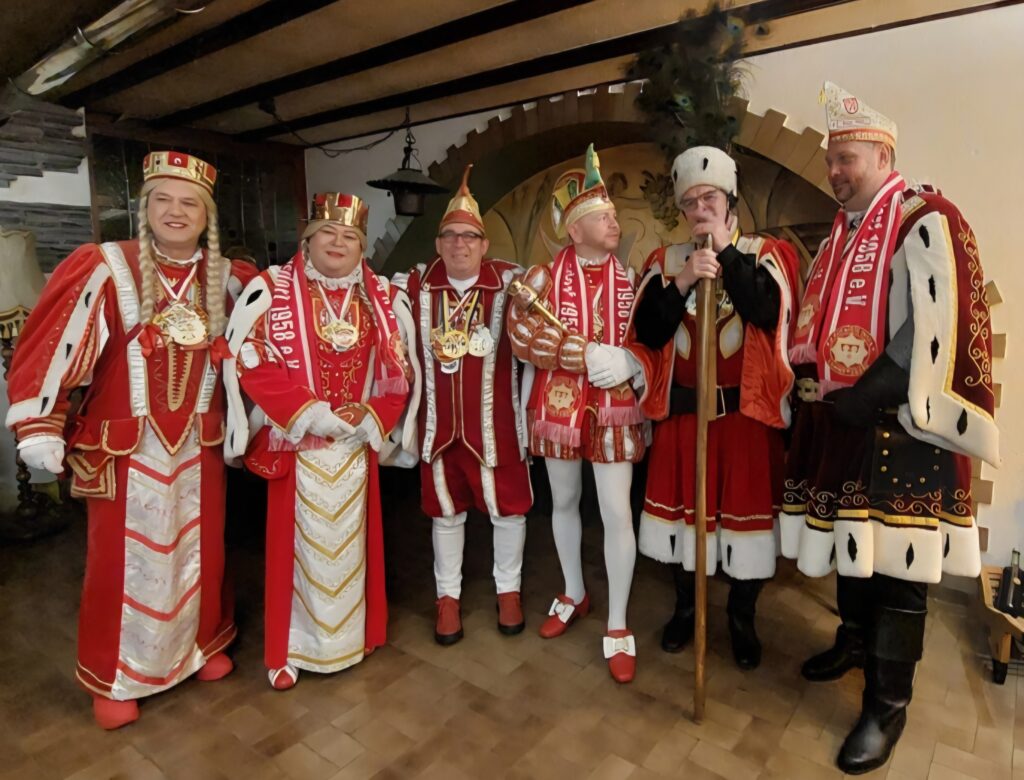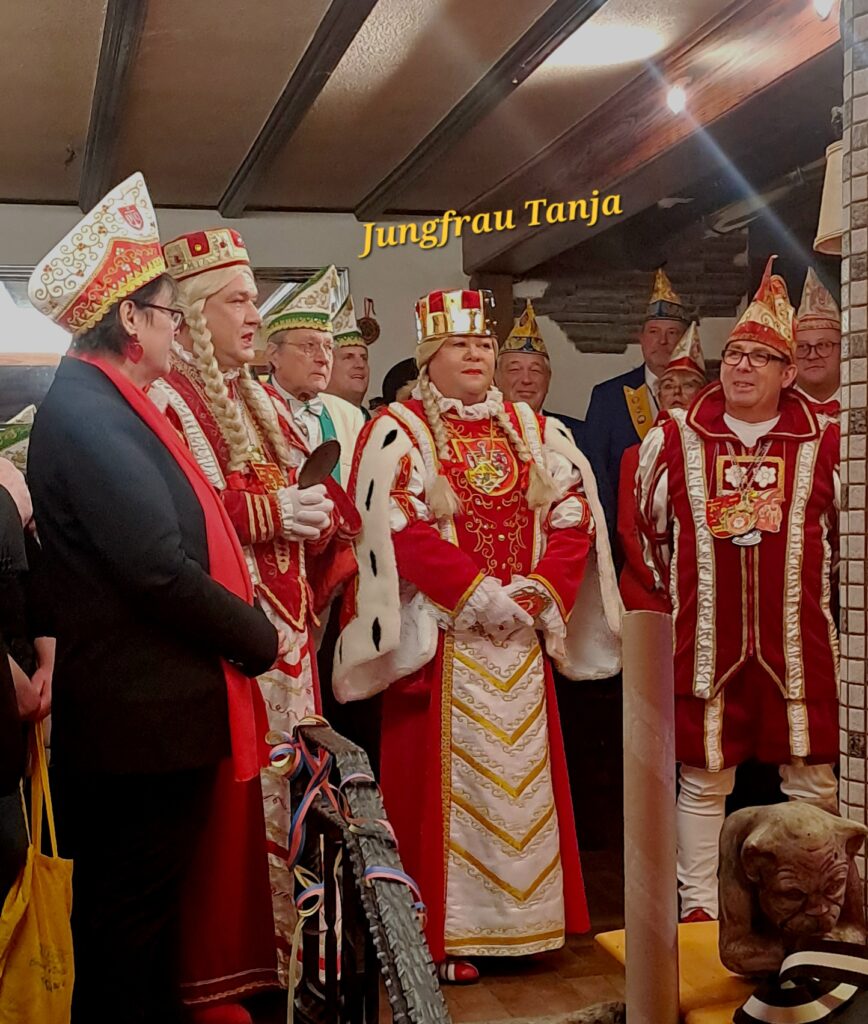 Es hat sich seit 2017 zu einer schönen Tradition entwickelt dass die Tollitäten aus Rodenkirchen unseren Karnevalsverein im Jägerhof besuchen. Dabei freut sich dieses Dreigestirn sehr darüber, dass sie quasi mitten in der Woche eine so große Begleitung aus dem Kölner Süden mit in die Eifel bringen können. Dass wir in diesem Jahr auch mit einem Dreigestirn aufbieten können ergibt natürlich ein besonders schönes Bild: