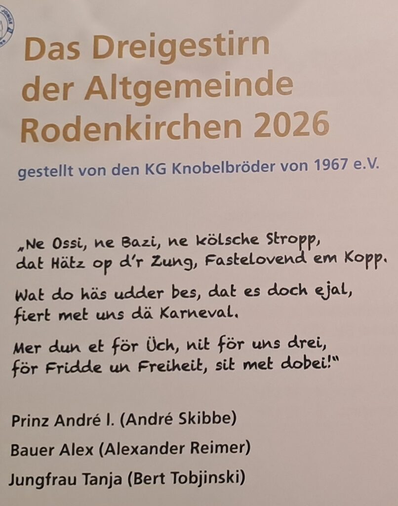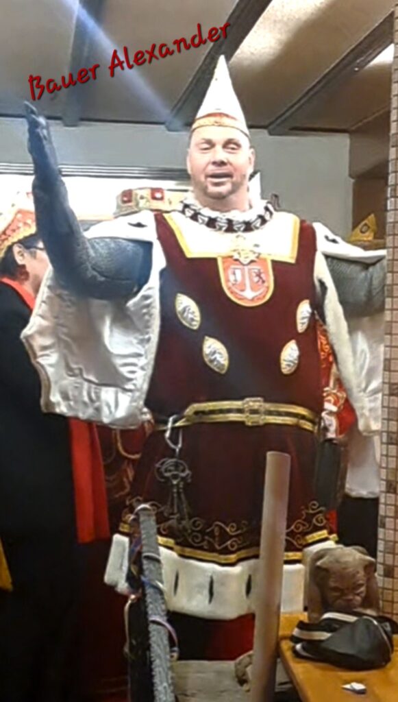 Präsident „Hacki“ als Sprecher der Rodenkirchener Tollitäten witzelte darüber, dass wir ja schon einen großen Bauern vorzeigen könnten, aber dass da noch jede Menge Luft nach oben sei im Vergleich zu ihrem Bauern Alex ( 2-Meter-Statur).